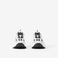 PRODUCT DETAILS Highlighted with our logo, Burberry Check and embroidered Thomas Burberry Monogram motif at the heel. Upper: 56% calf leather, 32% polyester, 6% polyamide, 4% rubber, 2% sheep leather Lining: 59% polyester, 38% sheep leather, 3% polyurethane Sole: 100% rubber Lace-up closure Printed Burberry lettering at side Made in Italy Item 80708531