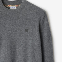 Product Details A sweater in a lightweight cashmere blend jersey, embroidered with a tonal Equestrian Knight Design. The crew-neck style is cut to a slim fit and subtly detailed with a Burberry Check trim inside the neckline. - Rib-knit trims - Embroidered Equestrian Knight Design at chest - Slim fit: this style is cut to a fitted silhouette. Fits true to size, take your normal size. - Item 81130871 Size & Fit - Length: 66.5cm/26.2in (size UK M) - Model’s height: 184cm/6ft. Model wears size UK M Fabric & Care - 95% cashmere, 4% polyamide, 1% elastane - Trim: 95% cashmere, 4% polyamide, 1% elastane - Specialist dry clean - Imported
