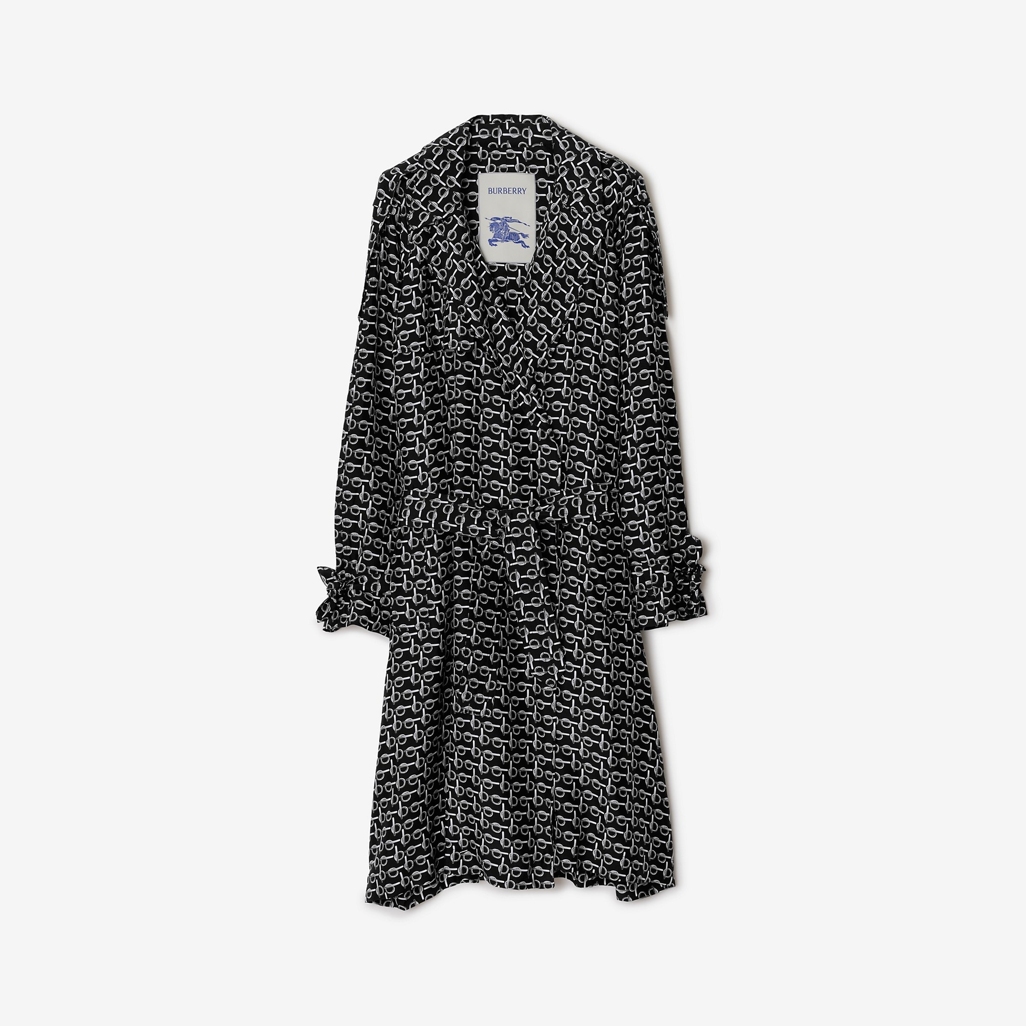 PRODUCT DETAILS A wrap trench coat made in Italy from silk, printed with the ‘b’ closure pattern. The unlined design is cut to a relaxed fit with raglan sleeves and a belt to adjust the shape. - Length: 125cm/49.2in (size IT 50) - Model’s height: 187cm/6ft 2in. Model wears size IT 48 Relaxed fit: a looser cut than our regular fit. Consider taking a size down. 100% silk Specialist dry clean Made in Italy Item 80880771