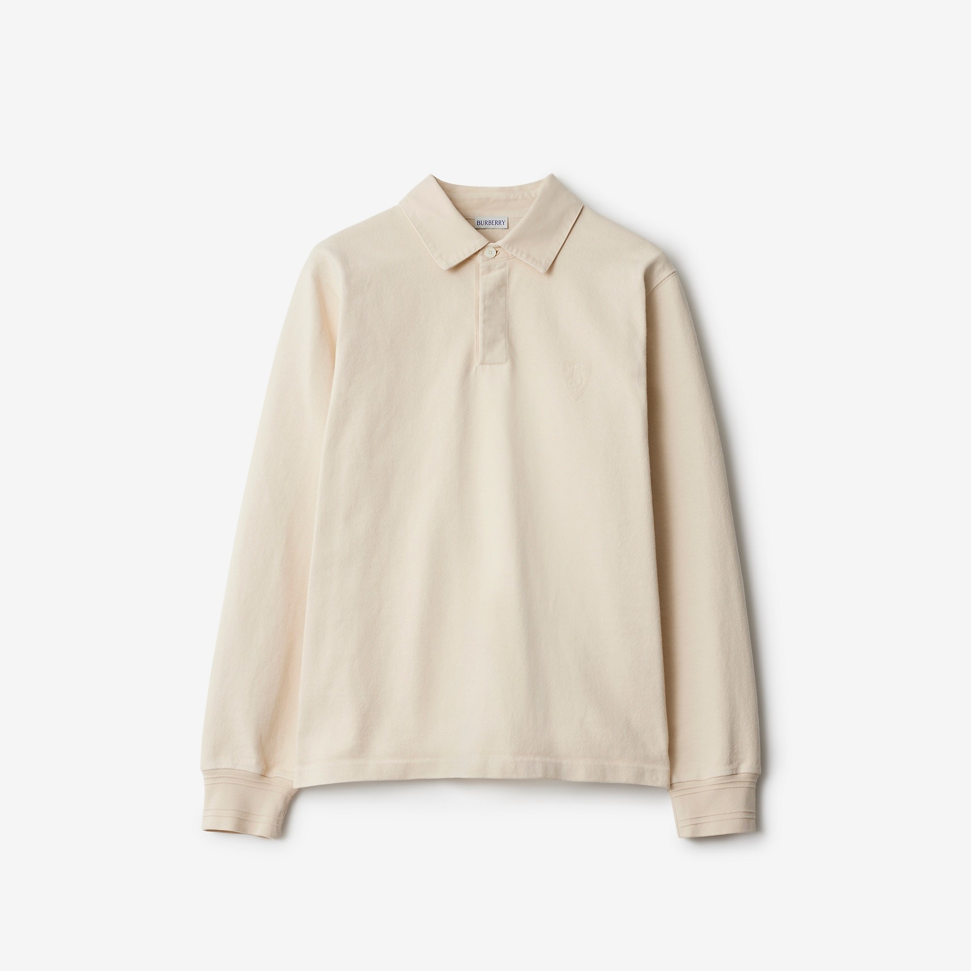 Product Details A long-sleeved polo shirt in cotton jersey. The design is cut to a relaxed fit and embroidered with a B shield, a motif inspired by our Equestrian Knight Design. - Button placket - Embroidered B shield at chest and back - Relaxed fit: a looser cut than our regular fit. - Machine wash - Item 81013361 Size & Fit - Length: 71cm/28in (size UK M) - Model’s height: 189cm/6ft 2in. Model wears size UK M Fabric & Care - 100% cotton - Trim: 100% cotton; 89% cotton, 10% polyamide, 1% elastane - Buttons: mother-of-pearl - Made in Portugal