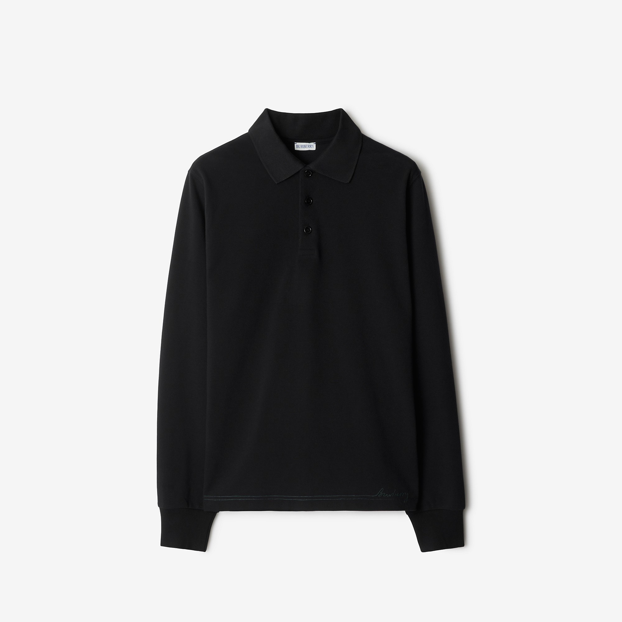 Product Details A long-sleeved polo shirt in Italian-woven cotton pique. The design is cut to a slim fit and embroidered with our logo at the hem. - Button placket - Embroidered Burberry lettering at hem - Slim fit: this style is cut to a fitted silhouette. Fits true to size, take your normal size. - Machine wash - Item 80947531 Size & Fit - Length: 73cm/28.7in (size UK L) - Model’s height: 185cm/6ft 1in. Model wears size UK L Fabric & Care - 100% cotton - Trim: 100% cotton - Buttons: mother-of-pearl - Made in Portugal