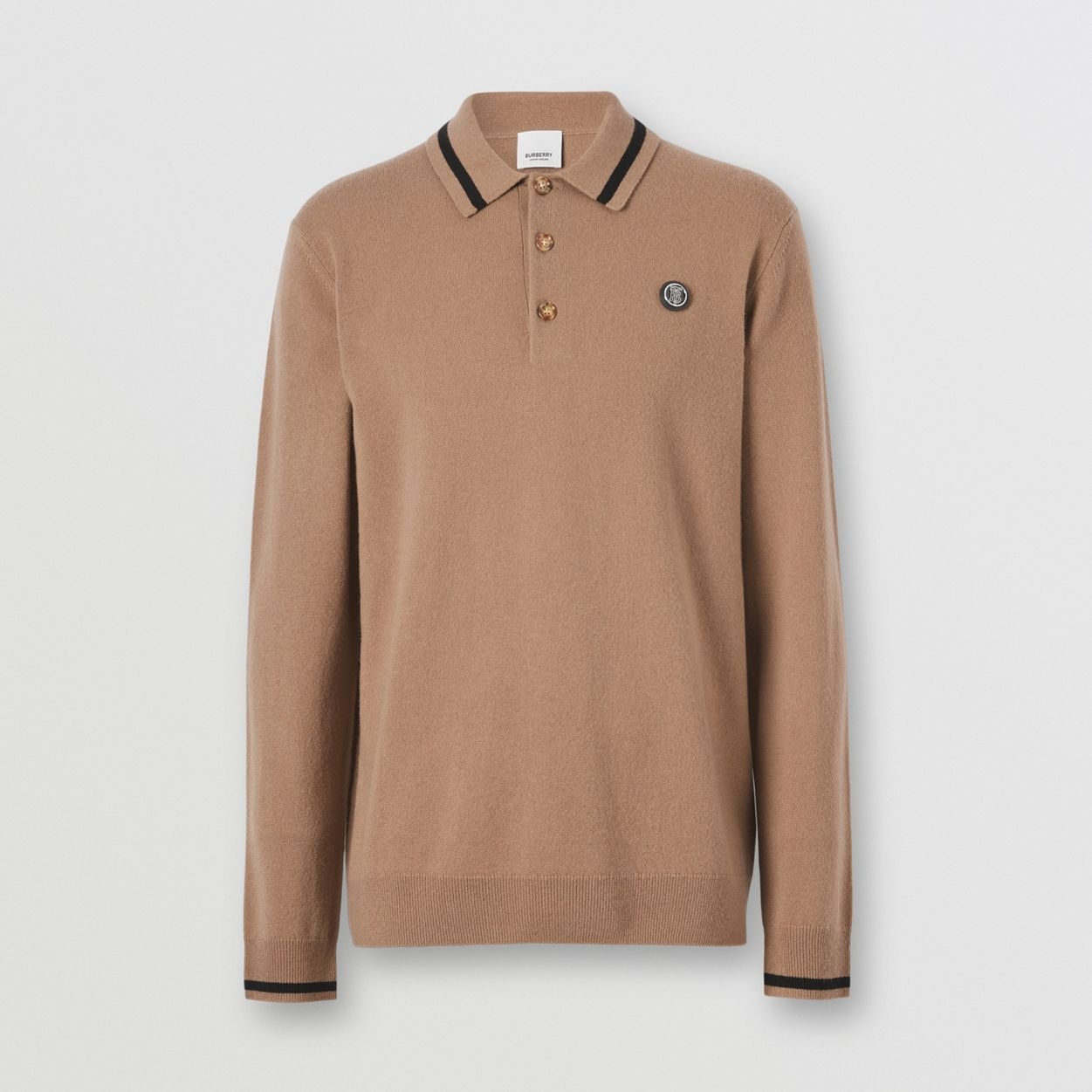 PRODUCT DETAILS A long-sleeved tipped polo shirt in cashmere, highlighted with a polished Thomas Burberry Monogram. The piece forms part of our Future Heritage collection, a modern capsule of elevated essentials. Polo shirt length: 73cm/28.7in. This is based on a size UK M as proportions change slightly according to size. Model’s height: 187cm/6ft 2in. Model wears size UK M. 100% cashmere Trim: 93% cashmere, 6% polyamide, 1% elastane Buttons: buffalo horn Specialist dry clean Imported 80443101