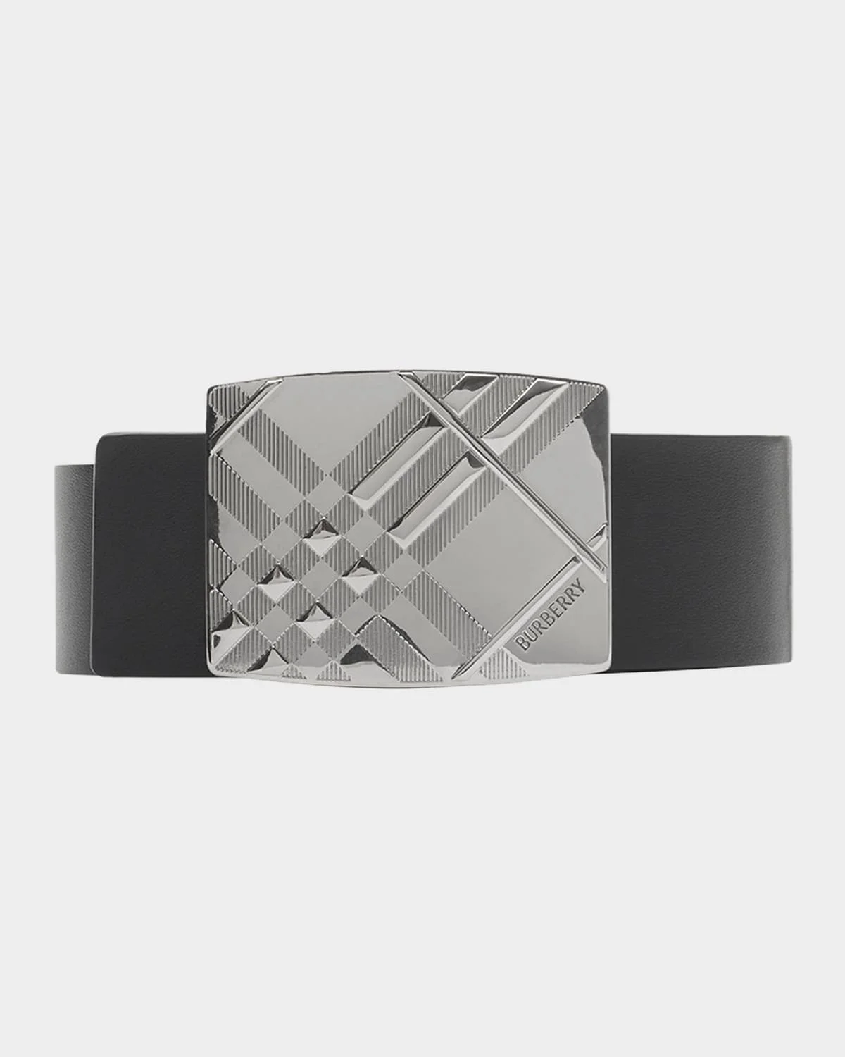 Men's Check-Engraved Buckle Reversible Leather Belt