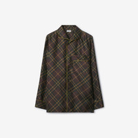 Product Details A pyjama shirt made in Italy from silk twill, printed with the Burberry Check. The style is tailored to an oversized fit and trimmed with green piping. - Button closure - Spread collar - Chest patch pocket - Straight hem - Oversized fit: our loosest cut, designed for exaggerated proportions. Consider taking a size down. - Item 81167511 Size & Fit - Length: 79cm/31.1in (size UK L) - Model’s height: 184cm/6ft. Model wears size UK L Fabric & Care - 100% silk - Buttons: mother-of-pearl - Specialist dry clean - Made in Italy