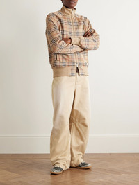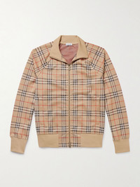 Checked Jacquard-Knit Zip-Up Sweatshirt Sand