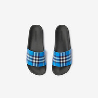 Product Details A pair of slides made in Italy, printed with the Burberry Check in a seasonal colourway. The ridged sole is debossed with our logo. - Contoured insole - Embossed Burberry lettering at side - Item 81127421 Fabric & Care - Upper: 100% polyurethane - Sole: 60% polyurethane, 40% thermoplastic polyurethane - Made in Italy