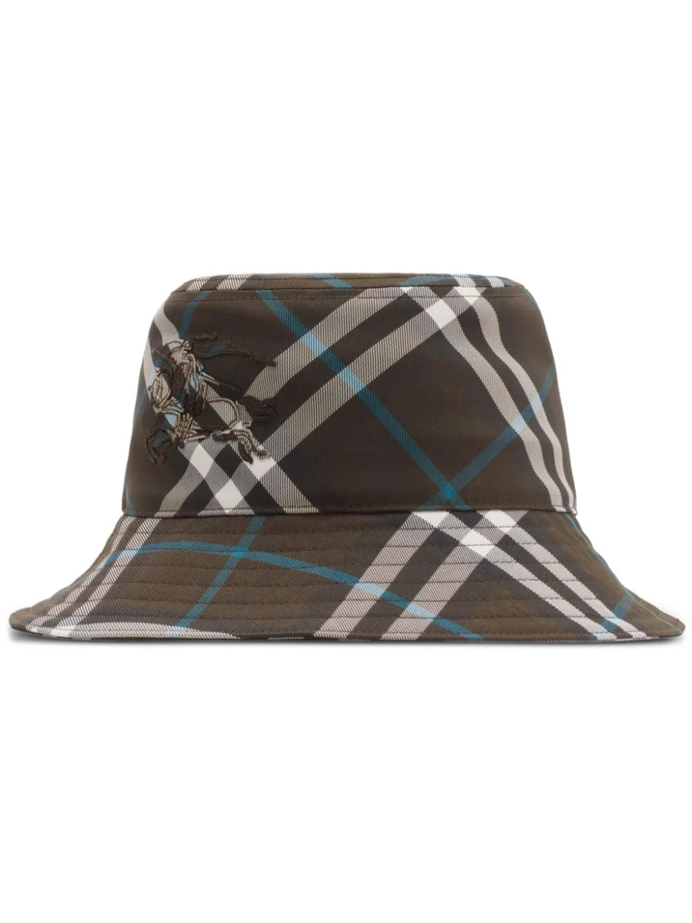 EKD check-print bucket hat Highlights - Chocolate brown/multicolour - Check pattern - Flat crown - Dropped wide brim - Signature equestrian knight motif - Decorative stitching - Pull-on style Made in Italy Composition Polyester 100%