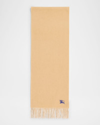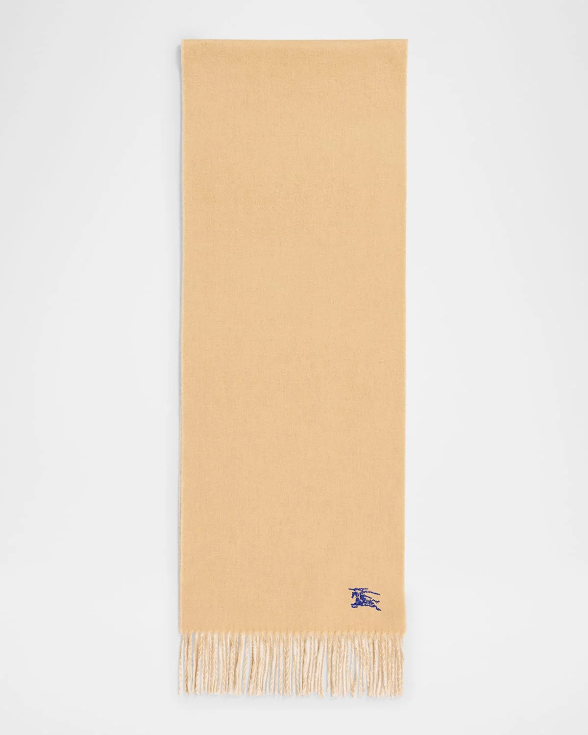 This Burberry reversible scarf is crafted from cashmere woven in Scotland at a mill founded in 1797 and embroidered with the Equestrian Knight Design. Approx. 66.1"L x 11.8"W The cashmere is washed in local spring water and brushed for an ultrasoft finish. Fringe ends Cashmere Dry clean only Made in Italy