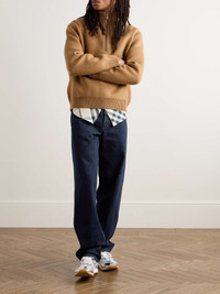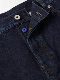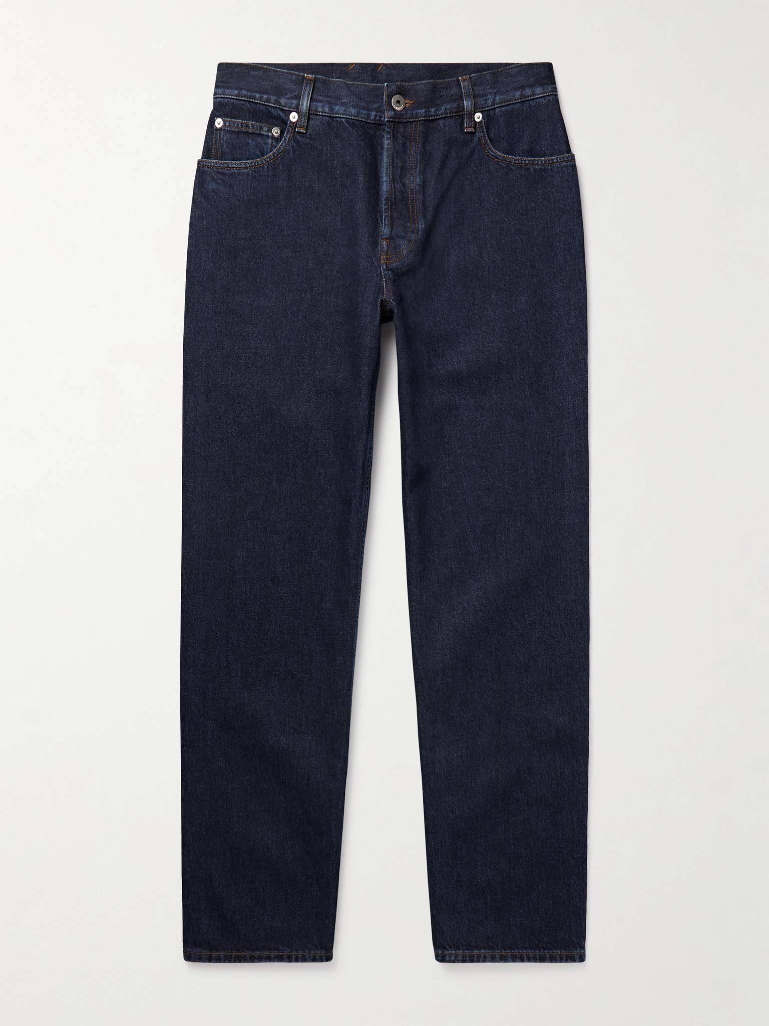 Burberry's straight-leg jeans are as classic as they come. Slightly faded to suggest signs of wear, they've been made in Italy and are detailed with a logo-debossed suede patch in a new signature bright-blue shade along the back of the waistband. Size & Fit - Model wears a size larger to achieve a looser fit - Regular-straight leg, low-crotch style - Mid-weight, non-stretchy fabric - Model is shown wearing a 32 - Model measures: waist size 30, height 6'0"/ 183cm Details & Care - Dark-blue denim - Button fastenings - 100% cotton - Machine wash