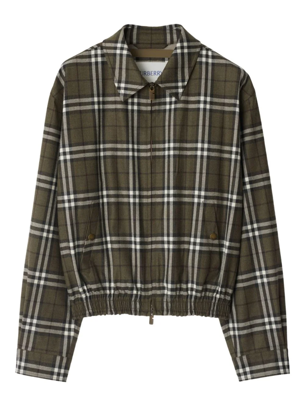 plaid jacket Highlights - Olive green - All-over checked pattern - Point collar - Elasticated hem - Front zip fastening - Long sleeves Made in Italy Composition Fabric 100% Washing instructions Read Manufacturer Guidelines