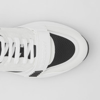 PRODUCT DETAILS Our chunky sneaker reworked in a clash of mesh, suede and Vintage check cotton, set on an accentuated, curved sole. Upper: 44% polyester, 22% calf leather, 17% calf suede, 17% cotton Trim: 80% polyester, 10% thermoplastic polyurethane, 7% polyamide, 3% rubber Lining: 54% polyester, 38% sheep leather, 8% goat suede Sole: 100% rubber Lace-up and Velcro tab closure Raised Burberry lettering at strap and heel Made in Italy 80518391