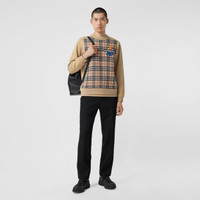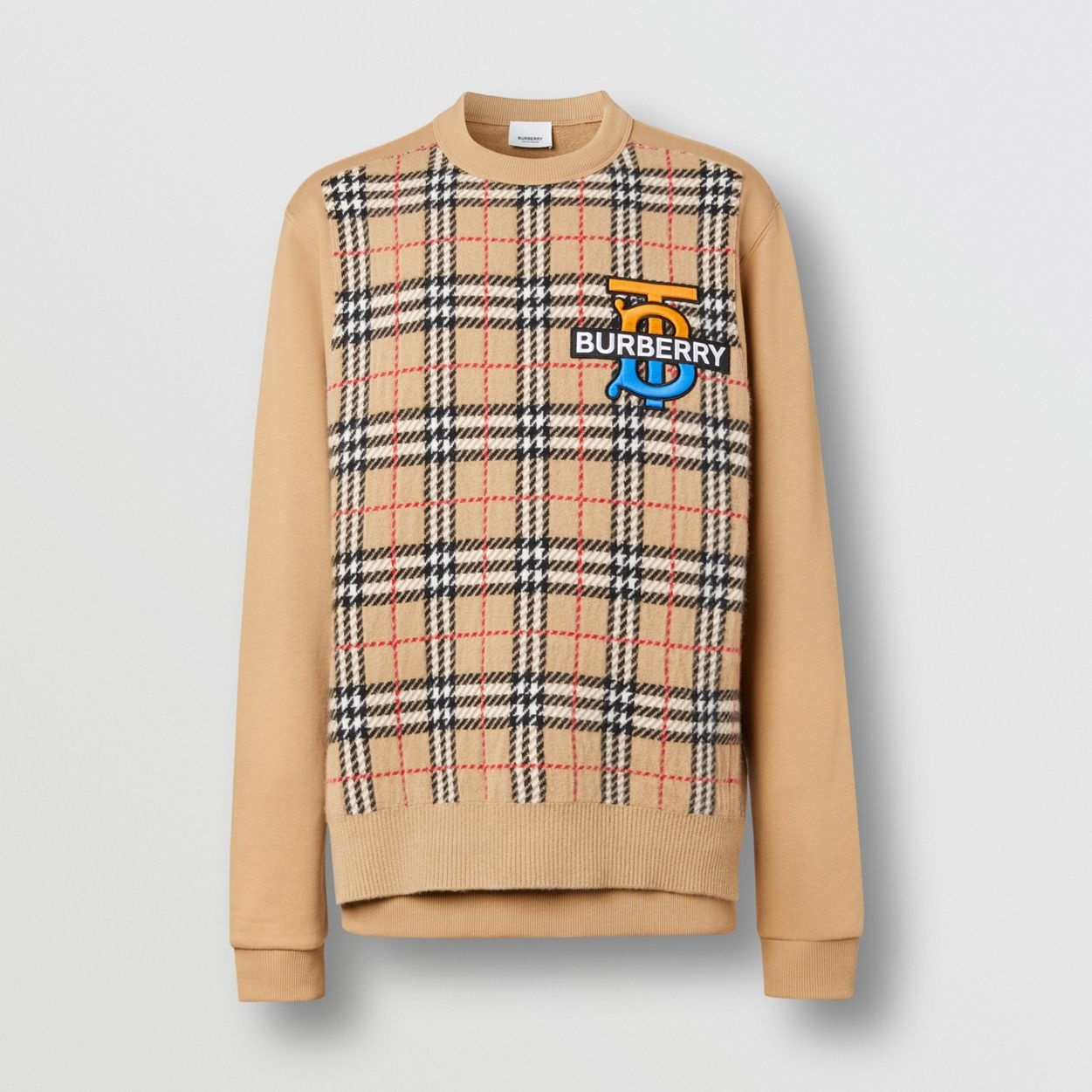 Monogram Motif Check Cashmere Panel Sweatshirt