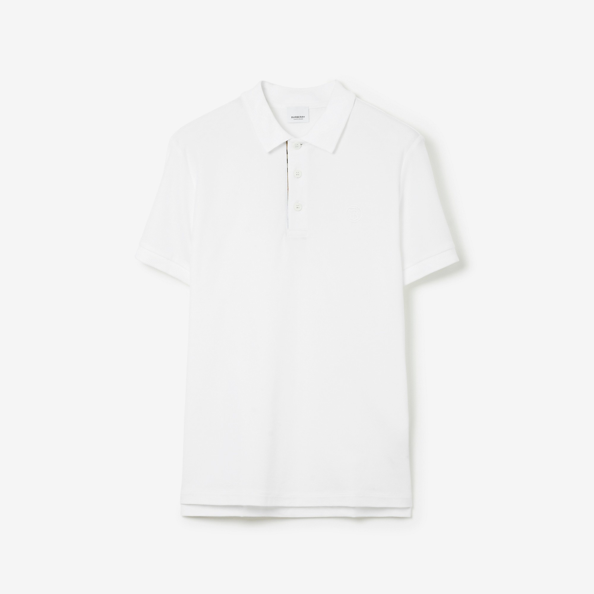 Product Details A polo shirt in cotton pique embroidered with the initials of our founder, Thomas Burberry. The design is cut to a slim fit and lined with Burberry Check at the placket. - Button placket - Embroidered Thomas Burberry Monogram at chest - Slim fit: this style is cut to a fitted silhouette. Fits true to size, take your normal size - Machine wash - *Containing organic cotton - Item 80552291 Size & Fit - Length: 75cm/29.5in (size UK L) - Model’s height: 186cm/6ft 1in. Model wears size UK L Fabric & Care - 100% cotton* - Trim: 100% cotton - Imported