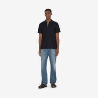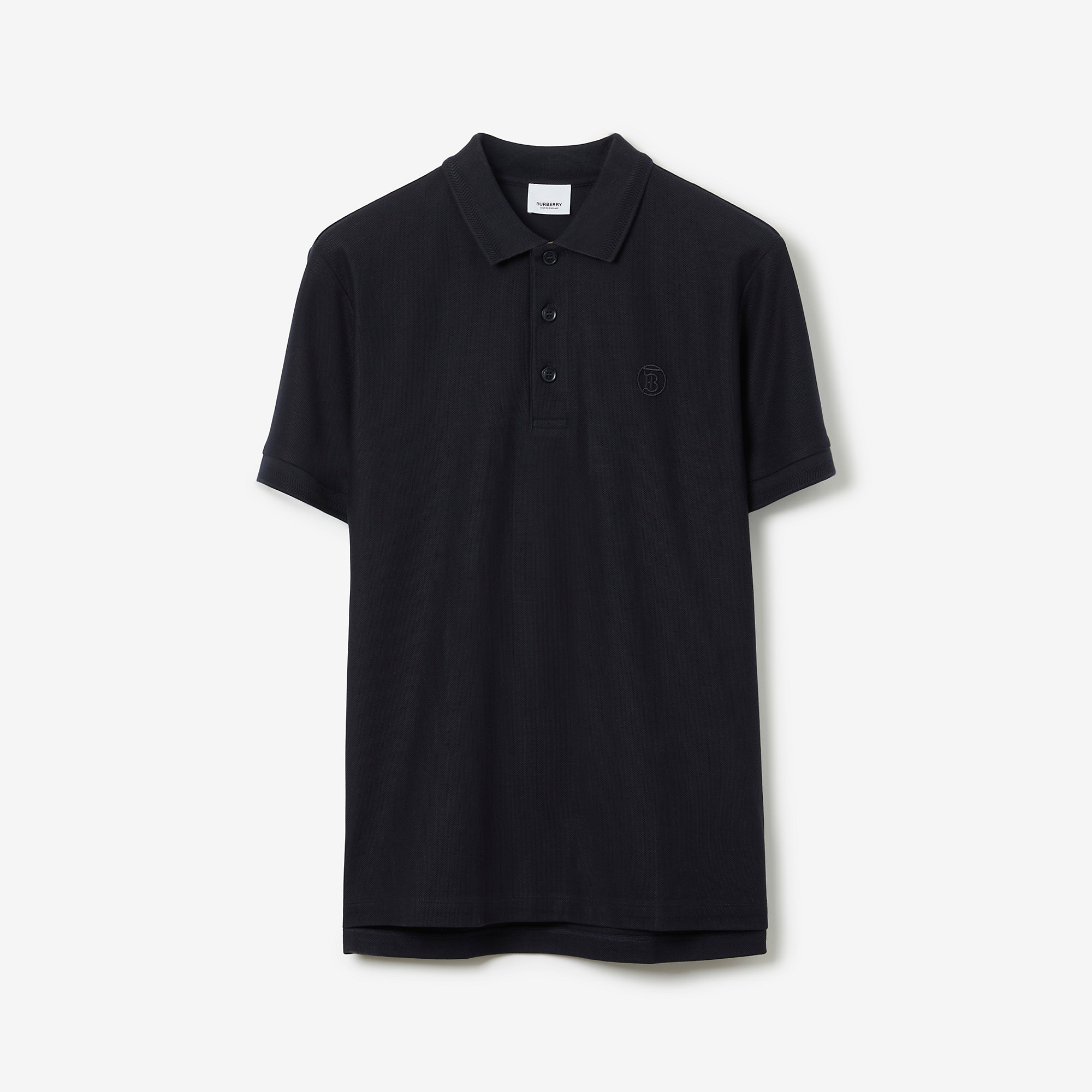 Product Details A polo shirt in cotton pique embroidered with the initials of our founder, Thomas Burberry. The design is cut to a slim fit and lined with Burberry Check at the placket. - Button placket - Embroidered Thomas Burberry Monogram at chest - Slim fit: this style is cut to a fitted silhouette. Fits true to size, take your normal size. - Machine wash - *Containing organic cotton - Item 80552271 Size & Fit - Length: 75cm/29.5in (size UK L) - Model’s height: 186cm/6ft 1in. Model wears size UK L Fabric & Care - 100% cotton* - Trim: 100% cotton - Imported