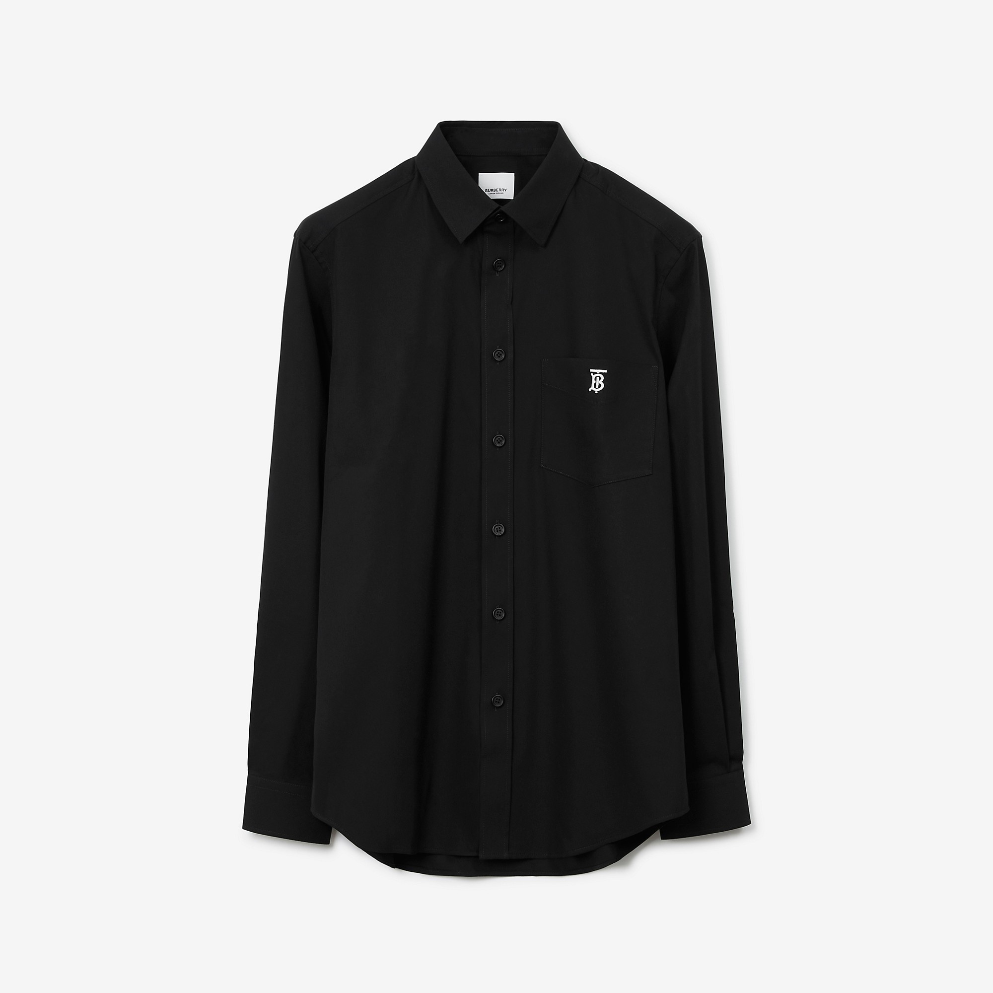 PRODUCT DETAILS A classic-fit shirt in Italian-woven technical cotton, highlighted with an embroidered Thomas Burberry Monogram and our Icon stripe at the placket. - Shirt length: 79.5cm/31.3in. This is based on a size UK M as proportions change slightly according to size. 76% cotton, 19% polyamide, 5% elastane Buttons: mother-of-pearl Single-button cuffs Point collar Chest patch pocket Curved hem Machine wash Imported Item 80574731