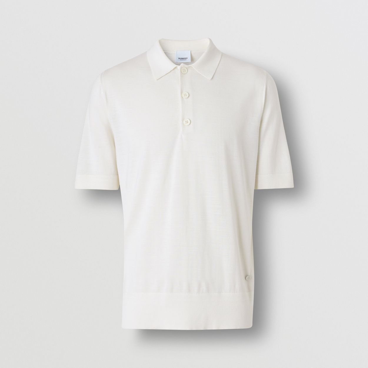 PRODUCT DETAILS A classic silhouette elevated in an Italian-woven wool silk blend, detailed with a polished Thomas Burberry Monogram. Polo shirt length: 69cm/27.2in. This is based on a size UK M as proportions change slightly according to size. Model’s height: 188cm/6ft 2in. Model wears size UK M. 75% wool, 23% silk, 1% polyamide, 1% elastane Buttons: tagua nut (100% corozo) Specialist dry clean Made in Italy 80503521