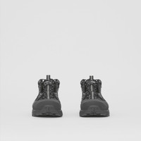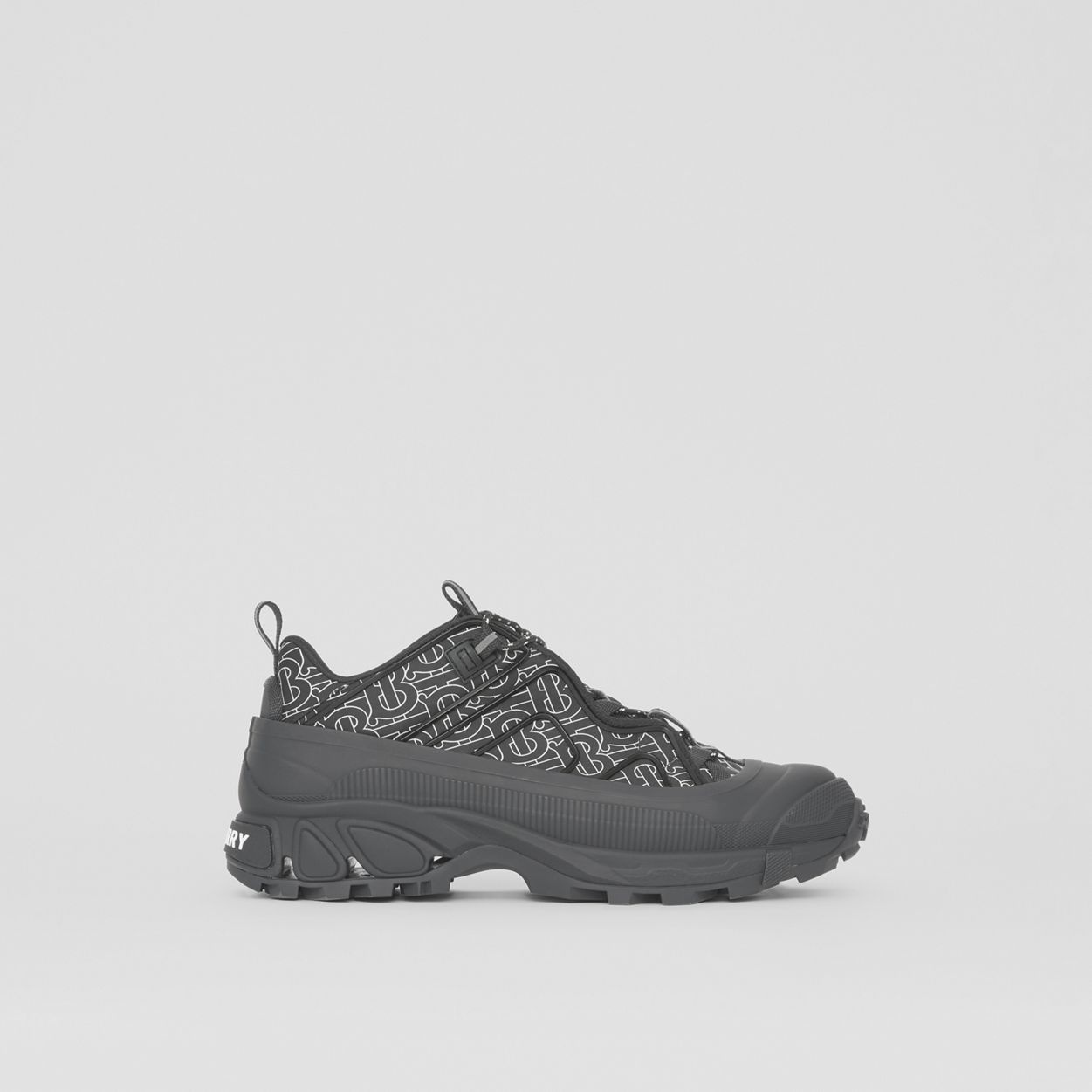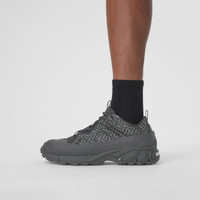 PRODUCT DETAILS Our runway sneaker crafted in Monogram-print ECONYL® – a sustainable nylon yarn made from regenerated fishing nets, fabric scraps and industrial plastic. The style is capped with a matte overshoe inspired by rain boots and a cross-detailed tread referencing our iconic check. Upper: 88% polyamide (ECONYL®), 10% acrylic, 1% cotton, 1% fibreglass Lining: 56% polyester, 36% sheep leather, 8% goat suede Sole: 100% polyurethane Lace-up closure Embossed Burberry lettering at heel Made in Italy We are designing products using recycled materials, led by our commitment to drive positive change throughout our supply chain. 80491861