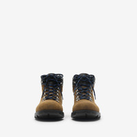 Product Details Hiking-inspired boots made in Italy from suede, set on a lightweight sole. The padded leather collar features a knitted Burberry Check insert in our signature sand colourway. Our Equestrian Knight Design is embroidered at the back and the laces are detailed with Knight Blue stripes. - Lace-up closure - Rounded toe - Equestrian Knight Design at sole - Comes with a dust bag - Item 81116721 Size & Fit - Length from top of heel to top of boot: 12.5cm/4.9in. Top circumference: 22.5cm/8.9in Fabric & Care - Upper: 70% calf suede, 20% lambskin, 9% polyamide, 1% elastane - Trim: 60% polyester, 40% steel - Lining: 69% polyester, 23% leather, 6% cotton, 2% polyurethane - Sole: 100% thermoplastic polyurethane - Made in Italy