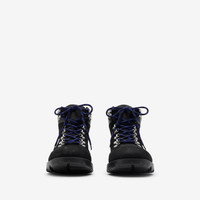 Product Details Hiking-inspired boots made in Italy from suede, set on a lightweight sole. The padded leather collar features a knitted Burberry Check insert in our signature sand colourway. Our Equestrian Knight Design is embroidered at the back and the laces are detailed with Knight Blue stripes. - Lace-up closure - Rounded toe - Equestrian Knight Design at sole - Comes with a dust bag - Item 81116741 Size & Fit - Length from top of heel to top of boot: 12.5cm/4.9in. Top circumference: 22.5cm/8.9in Fabric & Care - Upper: 70% calf suede, 20% lambskin, 9% polyamide, 1% elastane - Trim: 60% polyester, 40% steel - Lining: 69% polyester, 23% leather, 6% cotton, 2% polyurethane - Sole: 100% thermoplastic polyurethane - Made in Italy