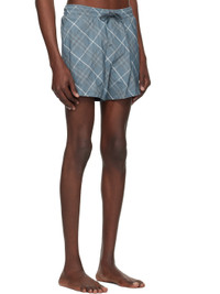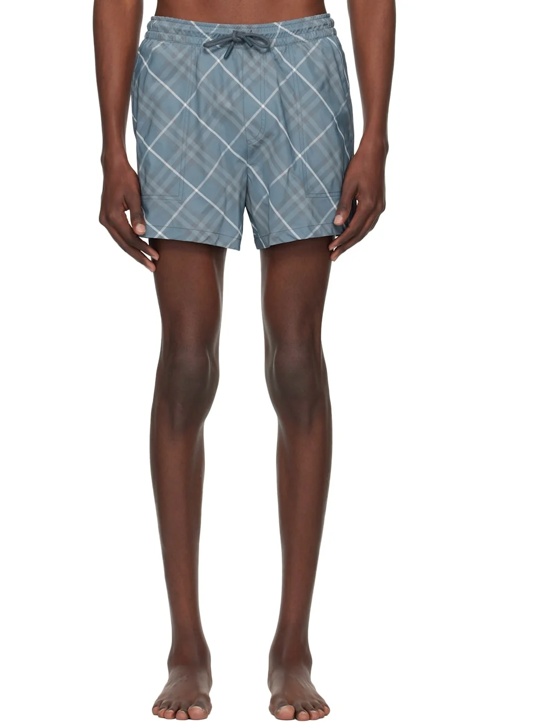 Nylon twill swim shorts. Check pattern throughout. · Drawstring at elasticized waistband · Three-pocket styling · Mock fly · Briefs-style mesh lining Supplier color: Pewter Body: 100% polyamide. Lining: 100% polyester. Made in Portugal 252376M208000