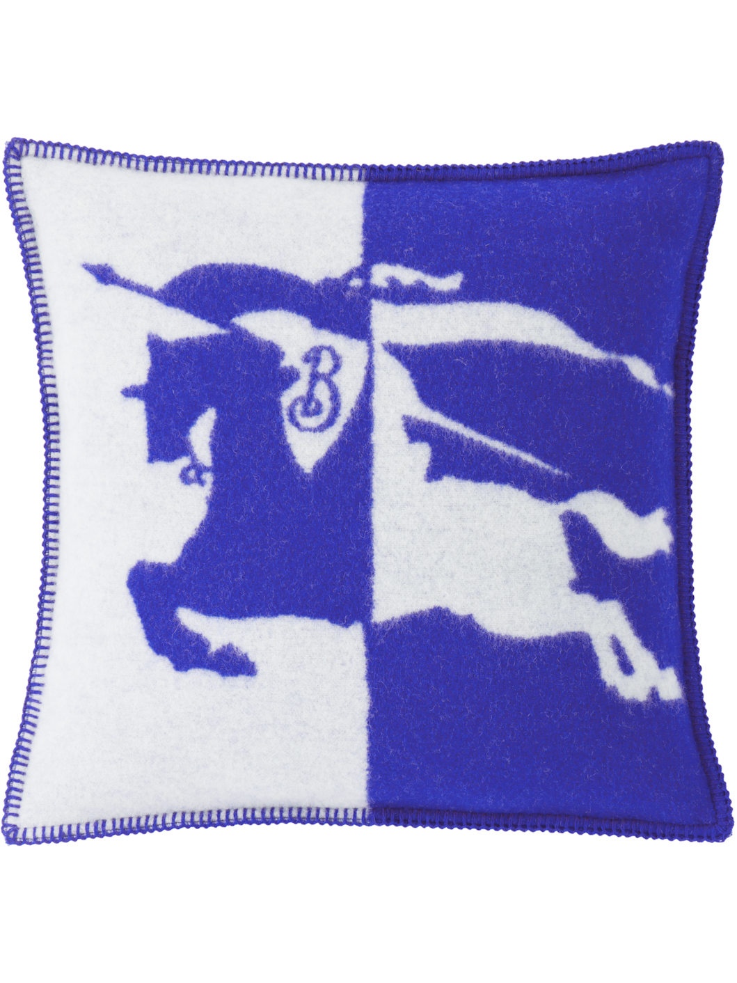 Wool melton cushion in navy and white. - Blanket stitching throughout - Jacquard logo graphic at face - Removable cover - Cotton poplin lining - H19 x W19 x D5.5 Supplier color: Knight