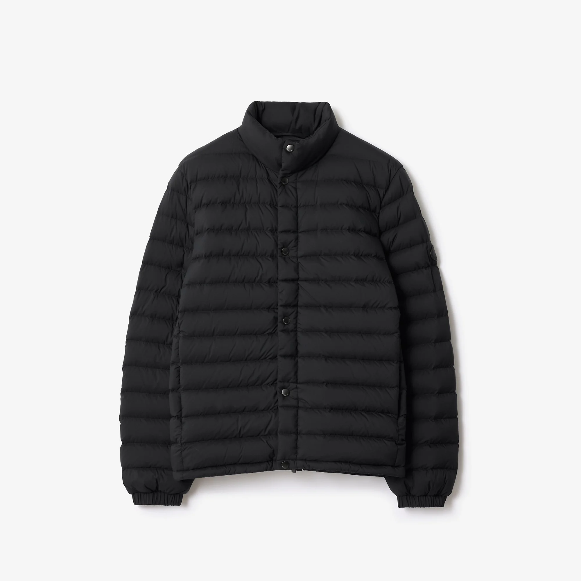 Product Details A puffer jacket in lightweight nylon taffeta, padded with goose down and feathers for warmth. The style is finished with an appliqued leather Knight stamp, an archival motif first seen on Burberry bags in the 1980s. Cut to a regular fit with a stand collar and a drawcord to adjust the hem. - Two-way zip and press-stud closure - Side zip pockets - Drawcord hem - Elasticated cuffs - Leather patch with Equestrian Knight Design at sleeve - Comes with a garment bag - Regular fit. Fits true to size, take your normal size. - Machine wash - Item 81183541 Size & Fit - Length: 68cm/26.8in (size UK L) - Model’s height: 185cm/6ft 1in. Model wears size UK L Fabric & Care - Outer: 100% polyamide - Trim: 100% leather - Lining: 100% polyamide - Filling: 90% goose down, 10% goose feathers - Wadding: 100% polyester - Imported