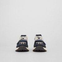 PRODUCT DETAILS Our chunky sneaker reworked in a clash of nylon, suede and our Burberry Check, set on an accentuated, curved sole. Upper: 43% polyamide, 37% calf suede, 20% calf leather Trim: 74% thermoplastic polyurethane, 24% polyester, 1% polyamide, 1% zinc alloy Lining: 85% polyester, 15% sheep leather Sole: 100% rubber Lace-up and Velcro tab closure Raised Burberry lettering at strap and heel Made in Italy 80606211