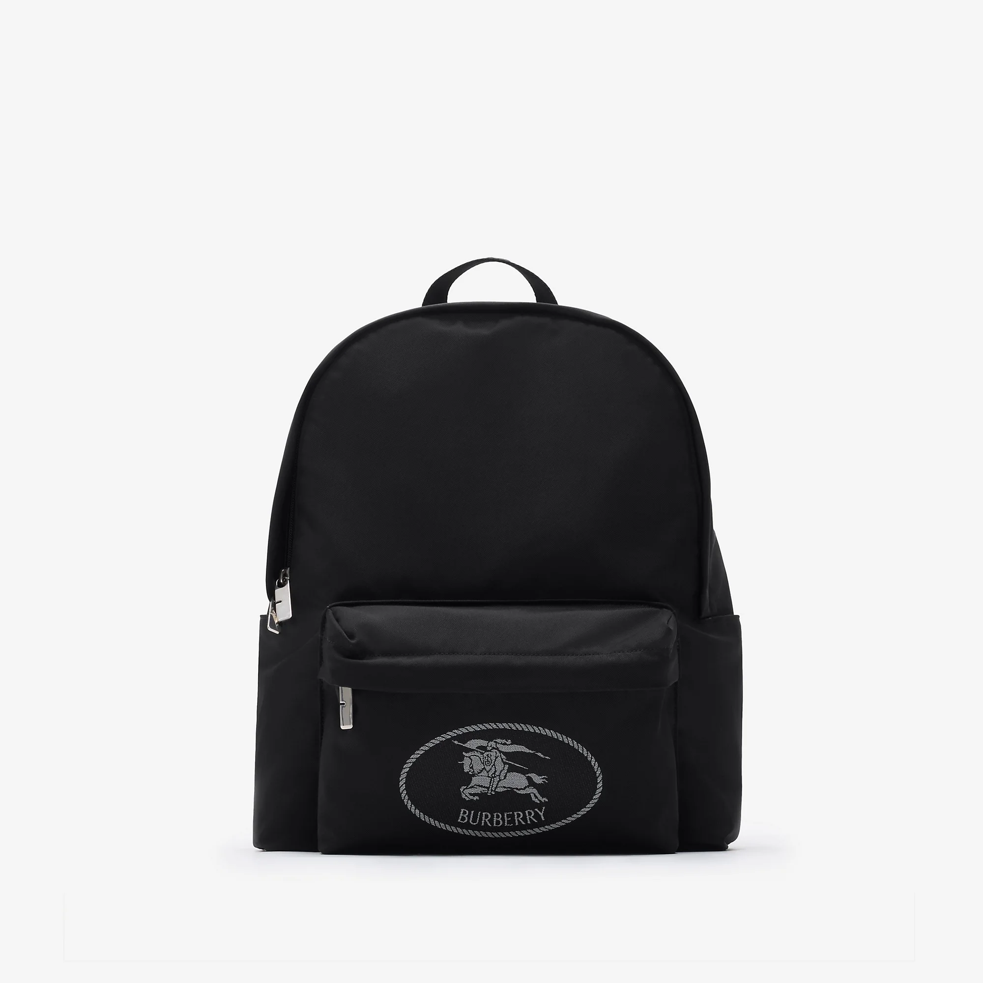 Product Details A backpack woven with a fil coupe Knight stamp in a reflective yarn, lined in a matching colour. The archival motif was first seen on Burberry bags in the 1980s. At the back is a breathable mesh panel with an exterior zip compartment to secure a laptop. - Top handle - Adjustable shoulder straps - Two-way zip closure - Two exterior zip pockets, interior slip pocket - Brushed metal hardware - Woven Equestrian Knight Design at front - Lined - Comes with a dust bag - Item 81113301 Size & Fit - 33 x 14 x 40cm/13 x 5.5 x 15.8in Fabric & Care - Outer: 90% polyester, 8% polyurethane, 1% glass, 1% polyamide - Back panel: 100% polyester - Lining: 97% polyester, 3% polyurethane - Imported
