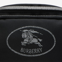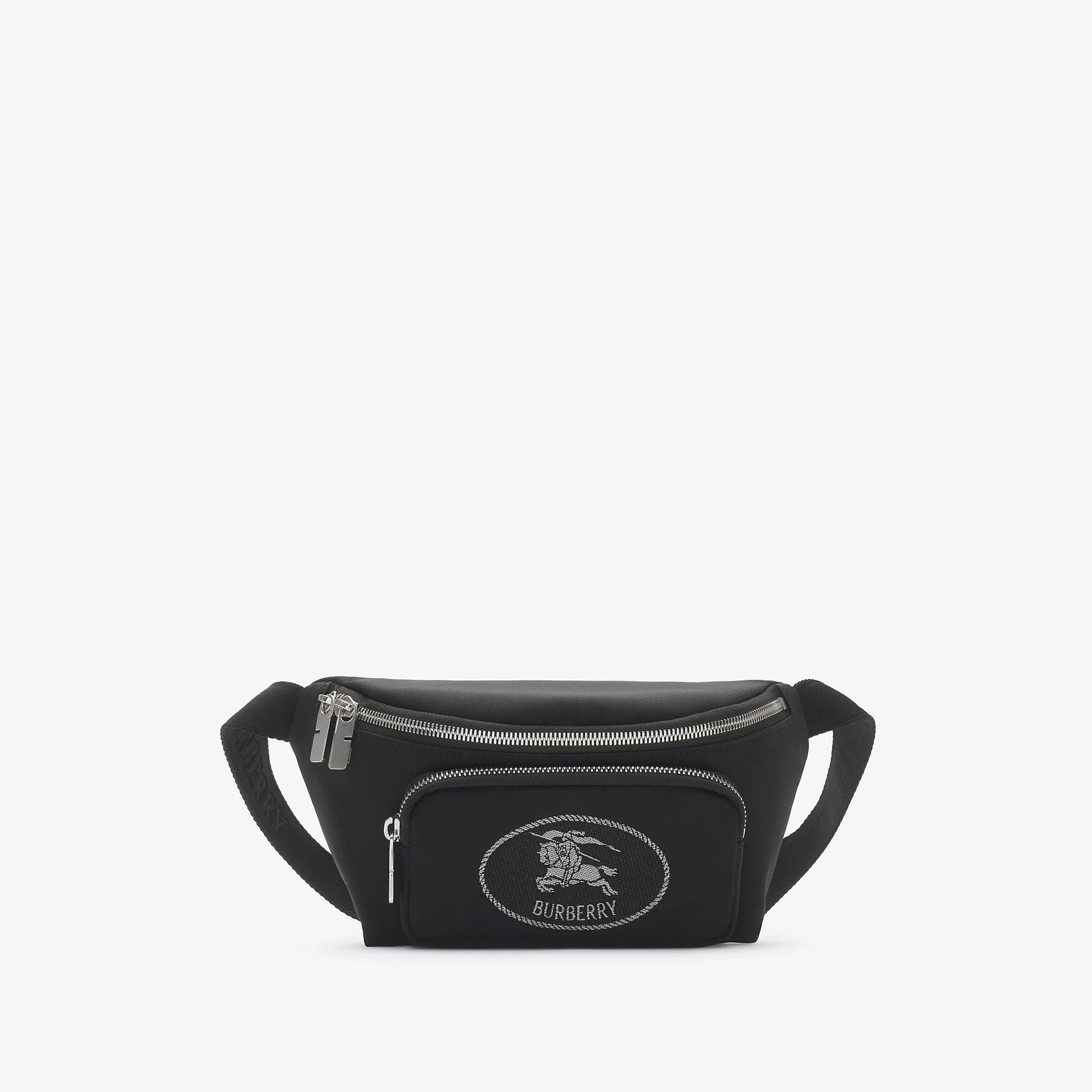 Product Details A belt bag woven with a fil coupe Knight stamp in a reflective yarn, lined in a matching colour. The archival motif was first seen on Burberry bags in the 1980s. The strap features tonal Burberry lettering and adjusts the design from a crossbody bag to wear around the waist. - Adjustable clip belt - Zip closure - Exterior zip pocket - Brushed metal hardware - Woven Equestrian Knight Design at front - Lined - Comes with a dust bag - Item 81114021 Size & Fit - 11 x 6 x 18cm/4.3 x 2.4 x 7.1in. Min. strap length: 68cm/26.8in. Max. strap length: 137cm/53.9in Fabric & Care - Outer: 90% polyester, 8% polyurethane, 1% glass, 1% polyamide - Lining: 97% polyester, 3% polyurethane - Imported