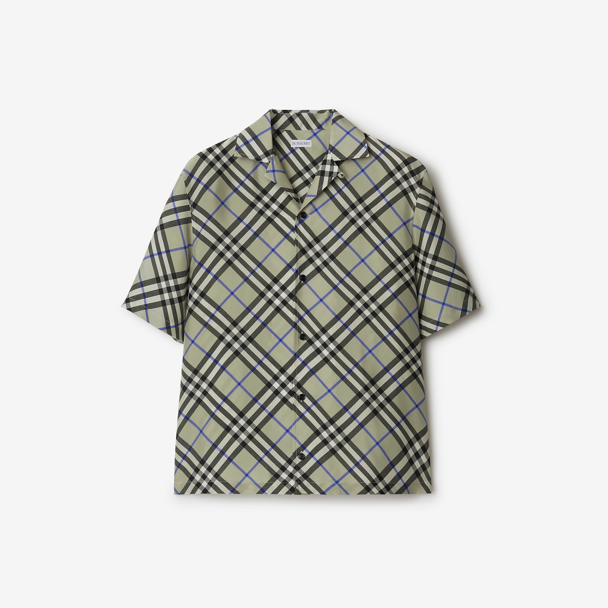 Product Details A short-sleeved shirt in silk poplin printed with the Burberry Check. The style is made in Italy and cut to an oversized fit. Part of Burberry Classics, wardrobe foundations with a unique Burberry slant. - Button closure - Revere collar - Straight hem - Oversized fit: our loosest cut, designed for exaggerated proportions. We recommend sizing down. - Item 80912031 Size & Fit - Length: 74cm/29.1in (size UK M) - Model’s height: 188cm/6ft 2in. Model wears size UK M Fabric & Care - 100% silk - Buttons: mother-of-pearl - Specialist dry clean - Made in Italy