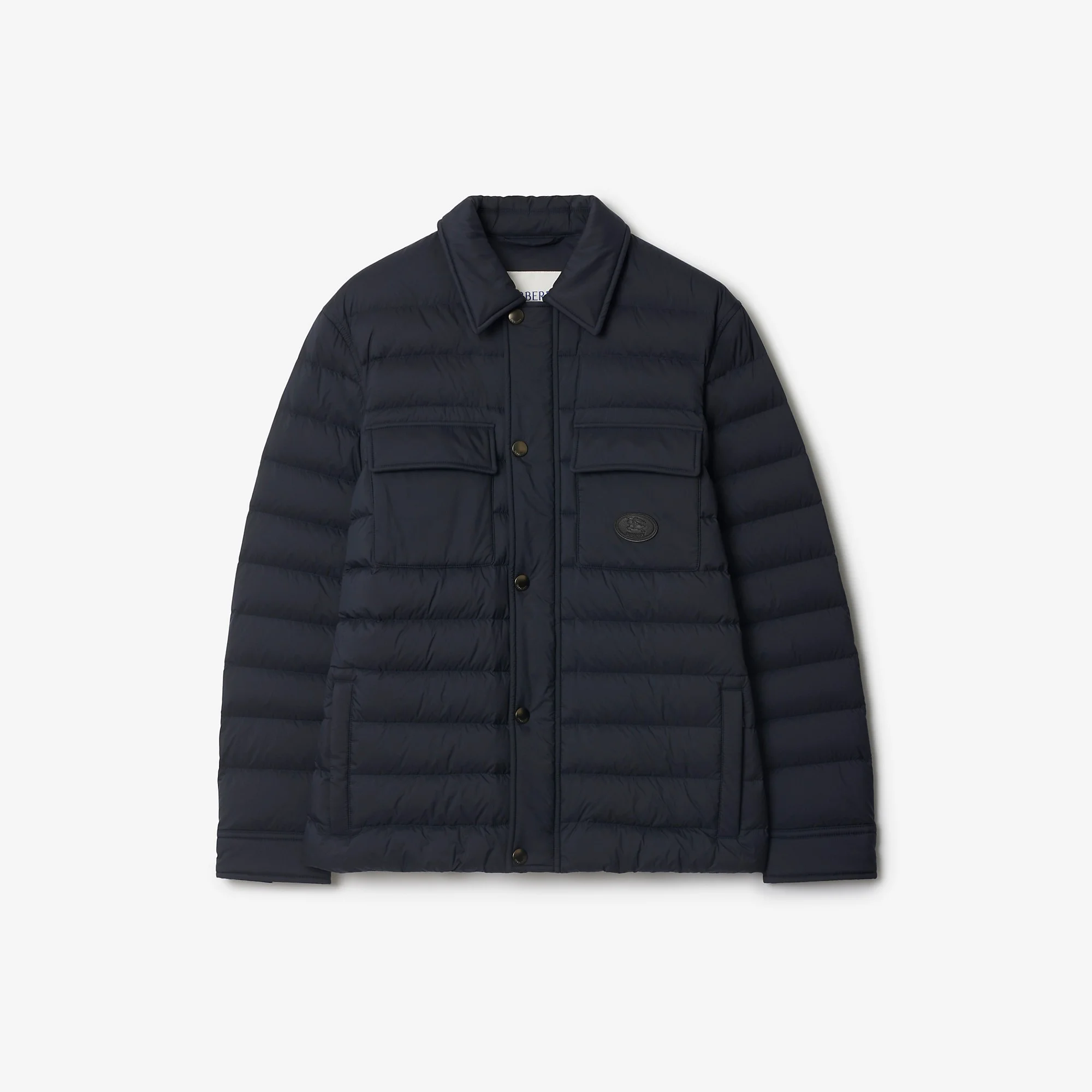 Product Details An overshirt in nylon, padded with goose down and feathers. Cut for a regular fit, the design is finished with our Knight stamp – an archival motif first used in the 1980s. - Press-stud and two-way zip closure - Chest press-stud flap patch pockets, side zip pockets - Press-stud cuffs - Leather patch with Equestrian Knight Design at chest - Regular fit. Fits true to size, take your normal size. - Machine wash - Item 81154631 Size & Fit - Length: 70cm/27.6in (size UK L) - Model’s height: 187cm/6ft 2in. Model wears size UK L Fabric & Care - Outer: 100% polyamide - Trim: 100% leather - Lining: 100% polyamide - Filling: 90% goose down, 10% goose feathers - Wadding: 100% polyester fibres - Imported