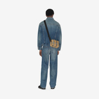 Product Details A crossbody bag in nylon woven with the Burberry Check and lined in a solid colour. The compact style is trimmed with calf leather and features an adjustable strap with a jacquard-woven logo. - Adjustable webbing strap - Zip closure - Exterior zip pocket, exterior slip pocket with magnetic closure - Hand-painted edges - Metal hardware - Raised Burberry lettering at front - Nylon lining - Item 80697601 Size & Fit - 22.5 x 6.5 x 16cm/8.9 x 2.6 x 6.3in . Min. strap drop: 34cm/13.4in . Max. strap drop: 58cm/22.8in Fabric & Care - Outer: 100% polyamide* - Trim: 100% calf leather - Lining: 100% polyamide - *The main material of this product is made with at least 30% bio-based materials - Bio-based materials are derived from renewable natural resources such as plants - Imported