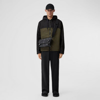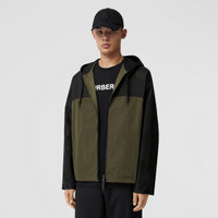 PRODUCT DETAILS A lightweight two-tone hooded jacket cut to a relaxed fit, perforated with our logo along the shoulders and sleeves. Relaxed fit Jacket length: 74cm/29.1in. This is based on a size UK M as proportions change slightly according to size. Model's height: 188cm/6ft 2in. Model wears size UK M. Outer: 100% polyester Trim: 100% leather Lining: 100% polyamide Hood lining: 100% polyamide Two-way zip closure Side zip pockets, interior zip pocket Drawcord hood and hem Press-stud cuffs Specialist dry clean Imported 80544471