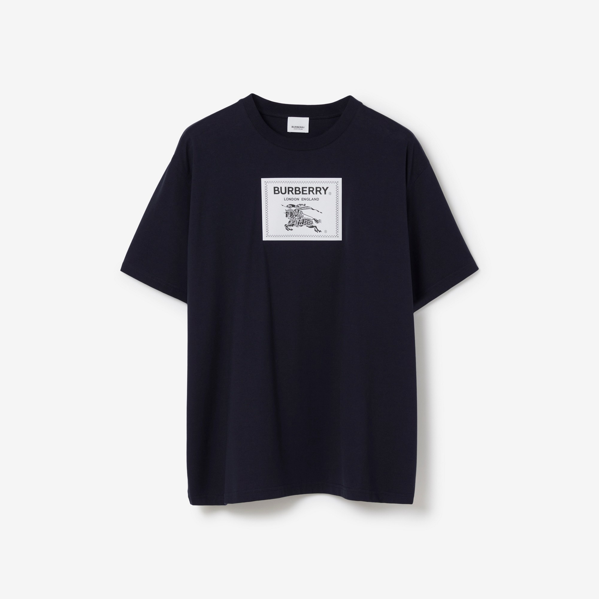 PRODUCT DETAILS A relaxed T-shirt containing organic cotton. The design features an appliquéd patch highlighted with our logo and the Equestrian Knight Design – inspired by labels found in archive Burberry pieces. The rider’s banner reads ‘Prorsum’, a Latin term which translates to ‘forwards’. - T-shirt length: 74cm/29.1in. This is based on a size UK M. Relaxed fit. This style is cut to a loose silhouette. 100% cotton Trim: 96% cotton, 4% elastane Machine wash Imported Item 80688011