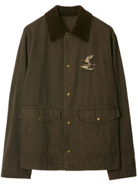 cotton field jacket Highlights - Khaki - Cotton - Twill weave - Garment dyed - Front press-stud fastening - Corduroy collar - Drop shoulder - Long sleeves - Press-stud fastening cuffs - Embroidered archival duck - Two front stud-fastening flap pockets - Straight hem Made in Italy Composition Cotton 100% SIZE & FIT Measurement CHEST 46.45 in(118 cm) SLEEVE LENGTH 26.37 in(67 cm) LENGTH 29.13 in(74 cm) WAIST 47.24 in(120 cm)