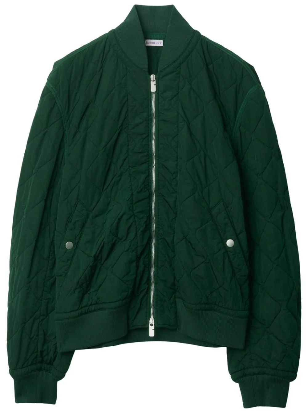 quilted zip-up bomber jacket Highlights - Ivy green - Quilted - Baseball collar - Front two-way zip fastening - Drop shoulder - Long sleeves - Ribbed cuffs - Two side stud-fastening pockets - Ribbed hem Made in Italy Composition Lining: Polyamide 100%, Polyester 100% Outer: Polyamide 100% Washing instructions Machine Wash