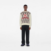 Product Details A sweater made in Italy from a lightweight wool blend, jacquard-knitted with the Burberry Check in an argyle pattern. Cut to a relaxed fit, the crew-neck style is finished with our logo and an embroidered Knight stamp – an archival motif from the 1980s. - Rib-knit trims - Embroidered Equestrian Knight Design at front - Relaxed fit: a looser cut than our regular fit. - Item 81105541 Size & Fit - Length: 68.5cm/27in (size UK M) - Model’s height: 184cm/6ft. Model wears size UK M Fabric & Care - 62% acrylic, 27% wool, 11% polyamide - Trims: 100% polyester; 60% acrylic, 26% wool, 13% polyamide, 1% elastane - Specialist dry clean - Made in Italy