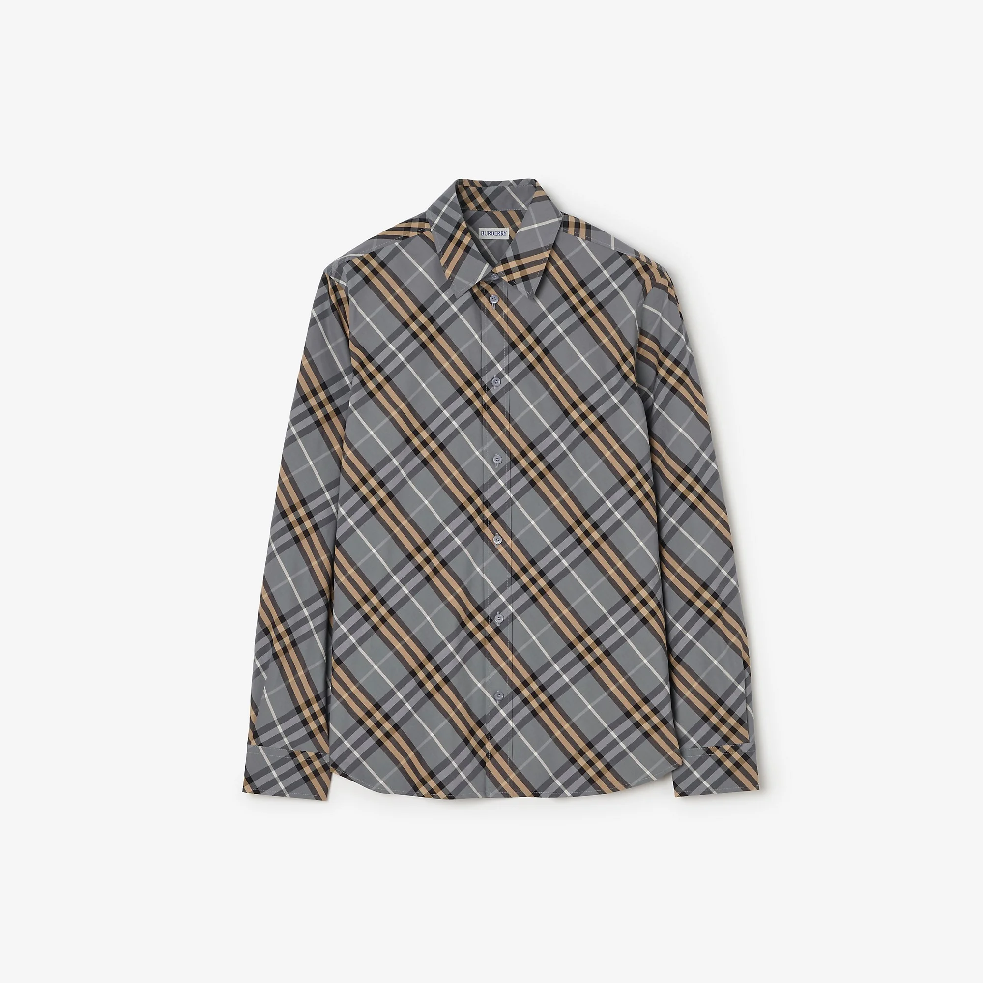 Product Details Regular fit. Fits true to size, take your normal size. A long-sleeved shirt made from cotton poplin woven with the Burberry Check in seasonal wave blue. The style is cut to a regular fit. - Item 81236701 Size & Fit - Regular fit. Fits true to size, take your normal size. - Length: 77.5cm/30.5in (size UK L) Fabric & Care - 100% cotton - Buttons: mother-of-pearl - Specialist dry clean - Imported