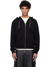 Heavyweight cotton French terry hoodie. · Check-patterned drawstring at hood · Two-way zip closure · Embroidered logo at chest · Patch pockets at waist · Check-patterned panel at lower sleeves Supplier color: Black 100% cotton. Made in Portugal 261376M202010