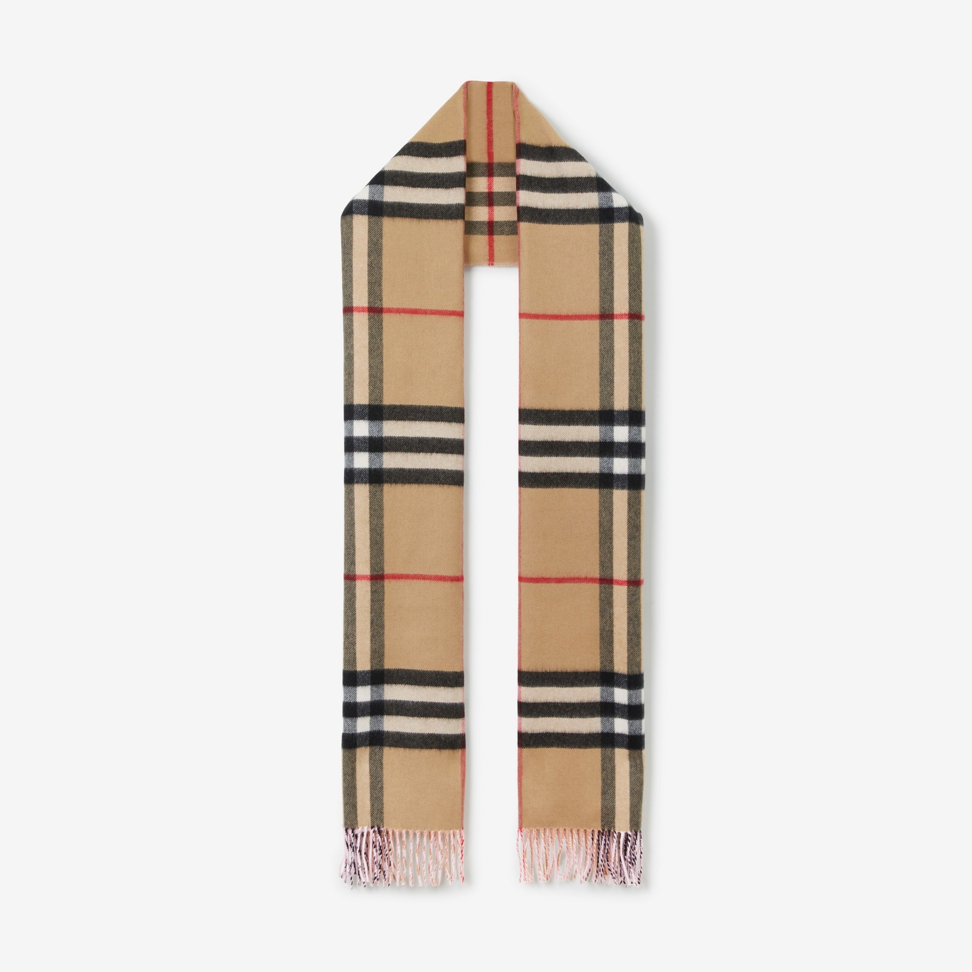 PRODUCT DETAILS A Scottish-made scarf in double-faced cashmere, reversing from our signature check to a solid colour. The fabric is washed in local spring water and carefully brushed with teasels for a super-soft finish. - 210 x 50cm/82.7 x 19.7in 100% cashmere Rectangular Fringing at both ends Specialist dry clean Made in Scotland Item 80359121