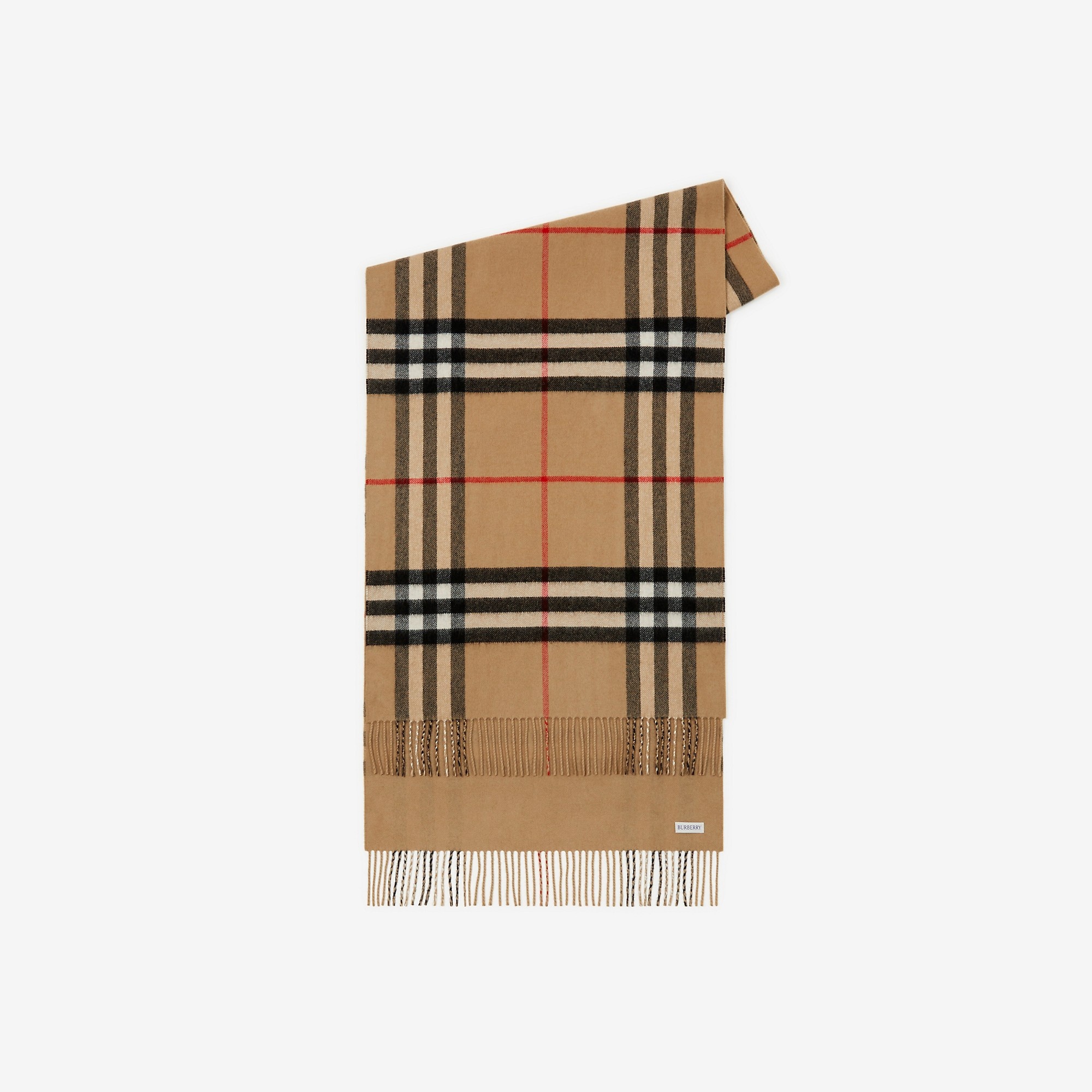 Product Details A scarf in double-faced cashmere, woven at a 200-year-old mill in the Scottish countryside. The reversible design switches from the Burberry Check to a solid colour. The fabric is washed in local spring water and brushed with teasels for an ultra-soft finish. - Rectangular - Fringing at both ends - Item 80784421 Size & Fit - 210 x 50cm/82.7 x 19.7in Fabric & Care - 100% cashmere - Specialist dry clean - Made in Scotland