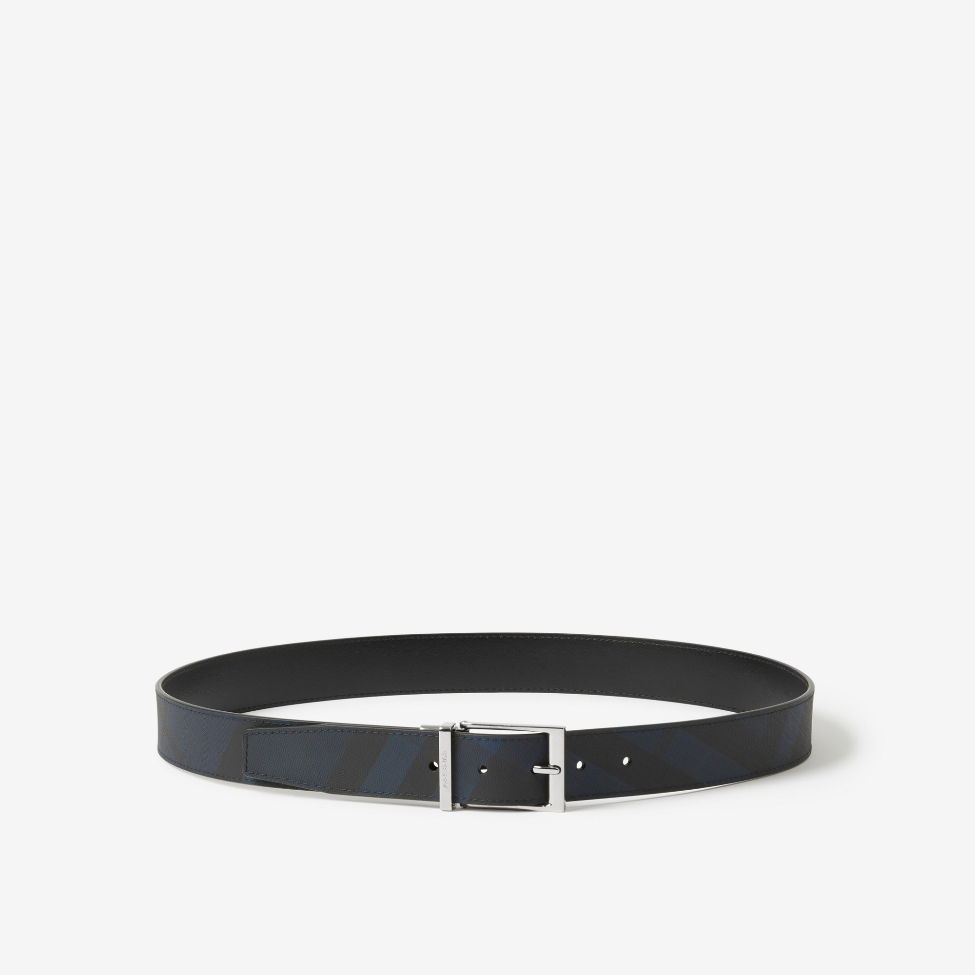 PRODUCT DETAILS An Italian-made belt in our signature London check, reversing to smooth leather. - 3.5cm/1.4in wide Outer: 68% thermoplastic polyurethane, 21% polyester, 11% cotton Lining: 100% leather Buckle: 100% stainless steel with palladium plating Hand-painted edges Engraved Burberry lettering at buckle Made in Italy Item 80401901