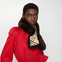 Product Details A padded tippet scarf made in Italy from soft shearling, reversing to cashmere woven with the Burberry Check. Tuck one end through the other to secure in a crossover shape around the neck. - Rectangular - Item 81177031 Size & Fit - 95 x 9cm/37.4 x 3.5in Fabric & Care - Outer: 100% real farmed dyed lamb shearling, ovis aries, country of origin: Spain - Reverse: 100% cashmere - Filling: 100% polyester fibres - Spot clean - Made in Italy
