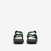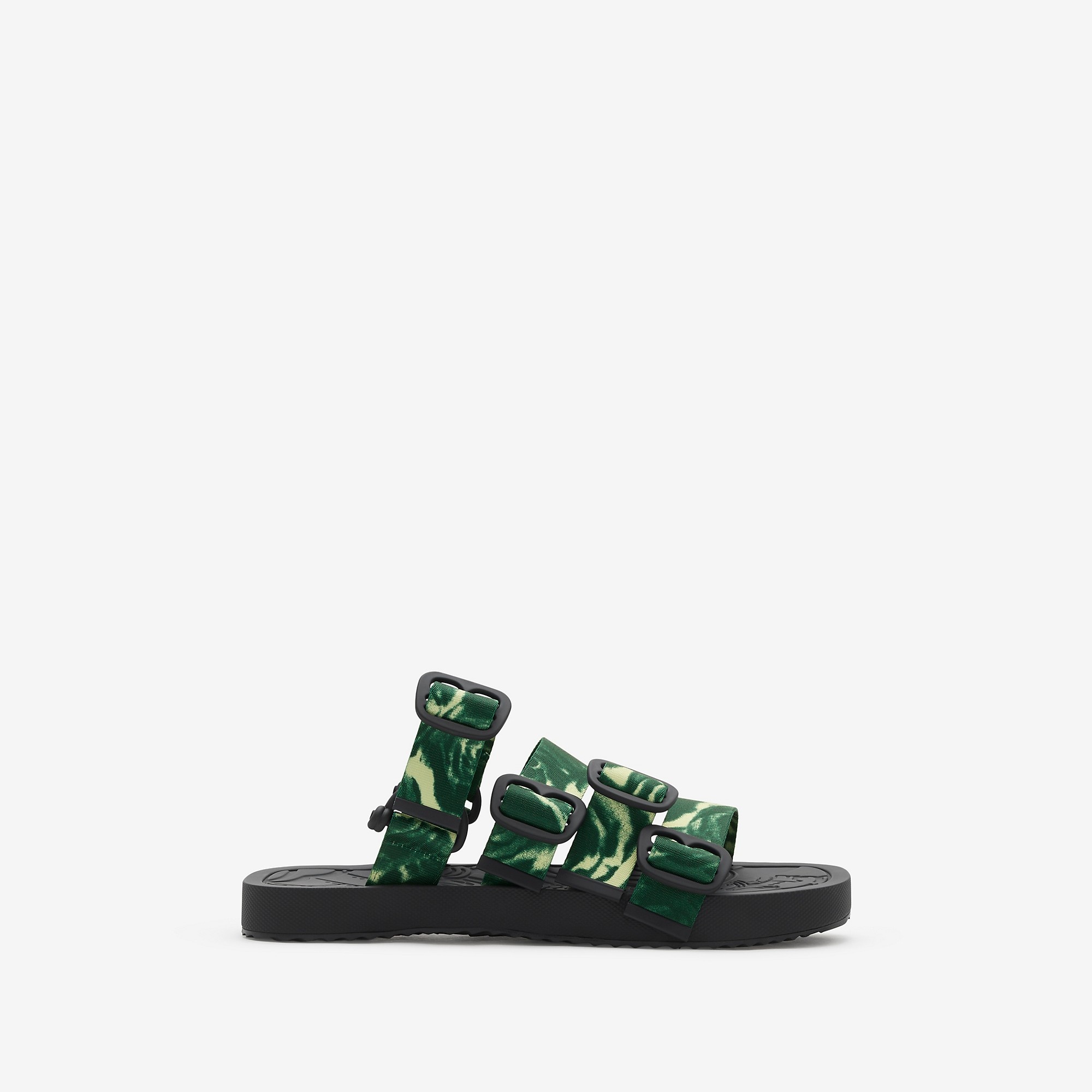 PRODUCT DETAILS Italian-made sandals with webbed nylon straps and B buckles. Printed with a seasonal rose pattern, the style is set on an insole featuring the Equestrian Knight Design. Upper: 100% polyamide Trim: 50% brass, 50% polyamide Sole: 100% polyurethane Made in Italy Item 80825851