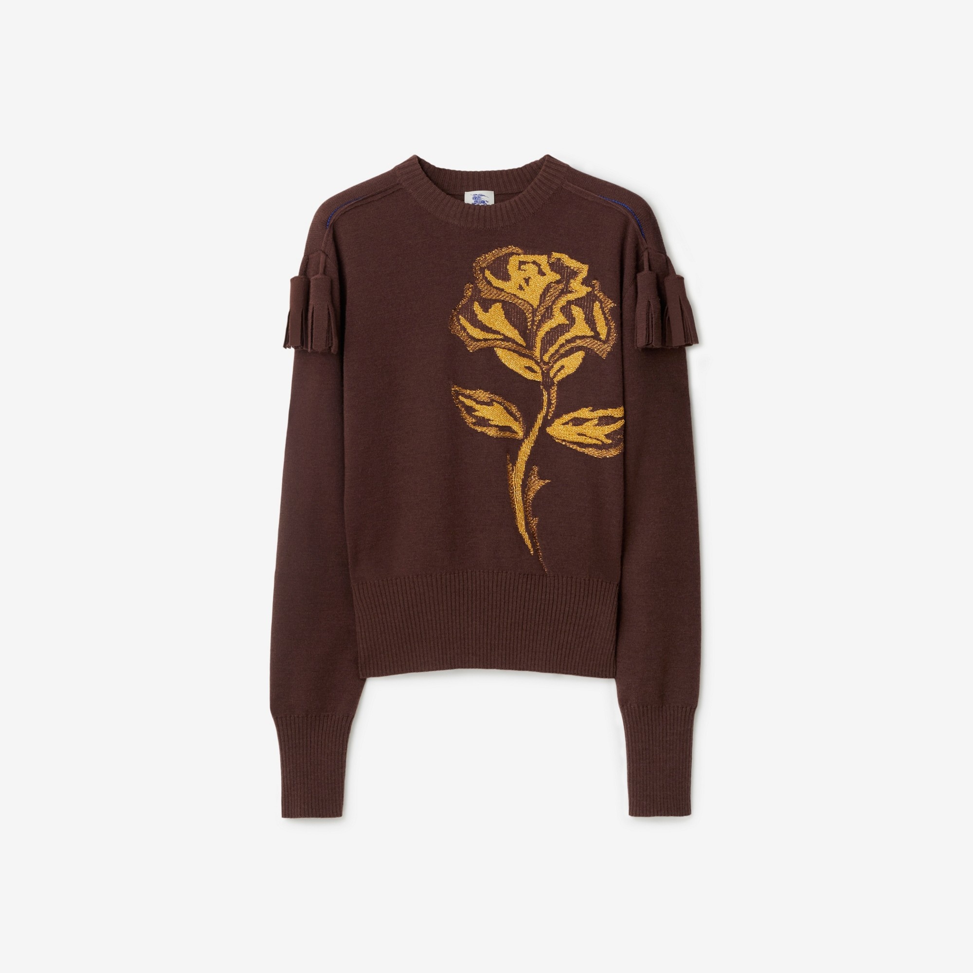PRODUCT DETAILS Metallic rose intarsia - Length: 64.5cm/25.4in (size UK M) - Model’s height: 186cm/6ft 1in. Model wears size UK M Regular fit 95% wool, 4% polyamide, 1% elastane Trim: 100% wool Embellishment: 72% viscose, 28% metallised polyester Specialist dry clean Made in Italy Item 80758271