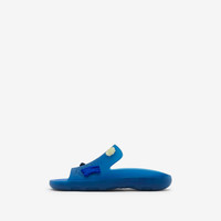 PRODUCT DETAILS A pair of rubber slides made in Italy with a contoured sole. The perforated upper features detachable rose and Equestrian Knight Design charms. Upper: 100% rubber Lining: 60% EVA, 40% rubber Sole: 100% rubber Made in Italy Item 80812641