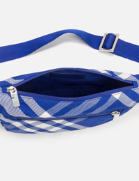 - Burberry - Shield Crossbody Bag - Check nylon fabric - Zip closure - External zip pocket - Adjustable crossbody strap - Color: Knight - Material: 100% Nylon - See more Cross-Body Bags, Bags and Accessories SIZING Approximate measurement: - Height: 13cm - Width: 25cm - Depth: 6.5cm - Strap Length: 36cm