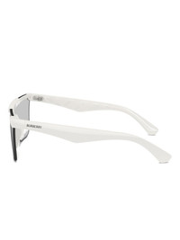 shield-frame sunglasses Highlights - White - Geometric frame - Mirrored lenses - Etched detailing - Plastic construction - Subtle branding - These glasses come with a protective case. Made in United States Composition Plastic 100%