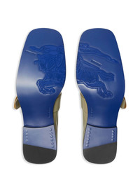 Shield leather loafers Highlights - Light olive green - Calf leather - Low block heel - Branded footbed - Shield plaque - Signature equestrian knight motif - Square toe - Logo sole - Slip-on style Made in Italy Composition Sole: Calf Leather 95%, Thermoplastic Polyurethane (TPU) 5% Lining: Calf Leather 95%, Goat Skin 5% Outer: Calf Leather 100%