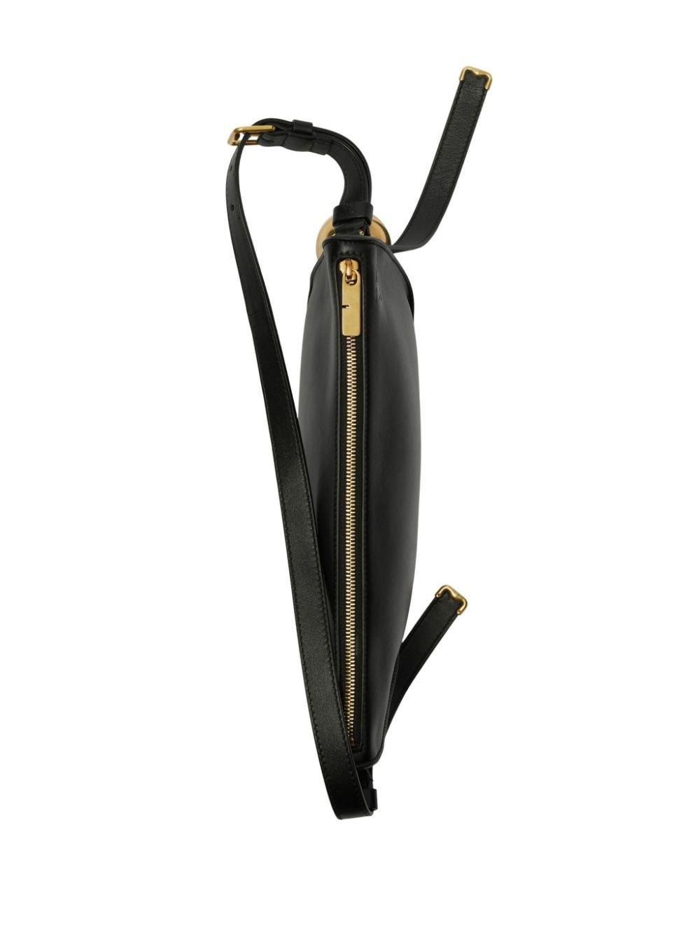 Shield leather shoulder bag Highlights - Black - Lambskin - Gold-tone hardware - Adjustable shoulder strap - Circular pendant - Top zip fastening - Main compartment Made in Italy Composition Outer: Lambskin 100% Lining: Lambskin 100% SIZE & FIT Measurement DEPTH 2.75 in(7 cm) HEIGHT 6.69 in(17 cm) STRAP 9.84 in(25 cm) WIDTH 12.59 in(32 cm)
